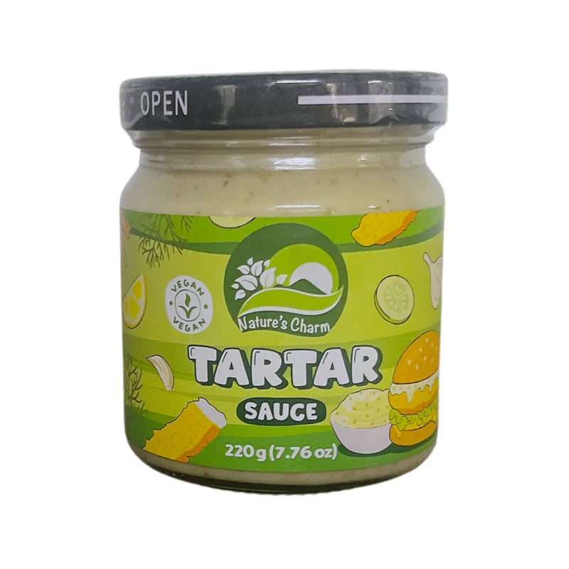 Discover the ultimate plant-based tartar sauce! Nature's Charm Vegan Tartar Sauce delivers authentic creamy, tangy flavor — completely free from eggs, dairy, and animal ingredients. Perfect for vegan fish alternatives, seafood dishes, sandwiches, and so much more. Enjoy authentic tartar sauce flavour the kind, plant-based way!